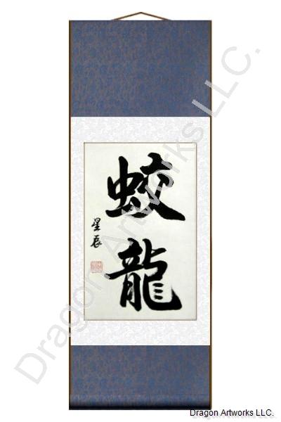 Chinese Baby Dragon Calligraphy Symbol Scroll