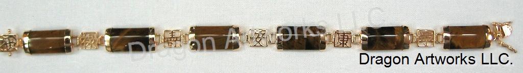 This jade Bracelet features Chinese symbols meaning Blessing for a long, healthy, peaceful, safe and prosperous life. The individual words on this bracelet are FU (Blessing), Money, Longevity, Safe and Sound, Health and Peaceful. This jade Bracelet is 8 inches long and 5/8 of an inch wide. The color of the jade in this bracelet can be seen in the picture to the right.