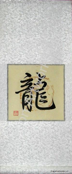 This Chinese symbol for dragon calligraphy scroll painting was hand-painted on a special type of rice paper bearing an auspicious symbol. The painting is mounted on a traditional Chinese wall scroll measuring 11x29 inches. The dragon in Chinese traditional culture is a symbol of power and influence. The noble dragon, a revered and glorious symbol of luck and the success.