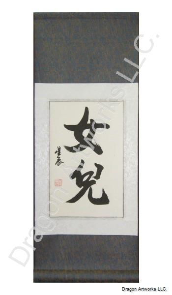 In Chinese culture, daughter is regarded as more considerate and caring towards parents. Daughter Chinese Calligraphy Wall Scroll features the deep love between daughter and parents through the expression of calligraphy. A Chinese calligraphy scroll depicting Chinese characters for daughter, expressing the love between parents and daughter.