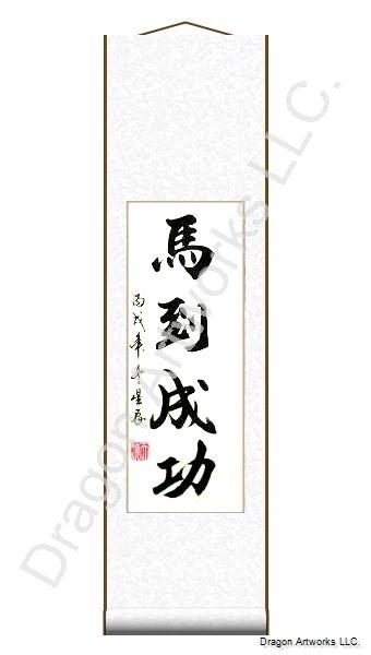 In ancient China the horse was the main means of transportation, so if you see one's horse came back, it was no doubt that one's task had been finished successfully. Nowadays, this idiom is widely used as a kindhearted wish that the receiver find success in everything they do. The meaning of giving this Chinese calligraphy scroll to someone is to wish them success in all their pursuits.