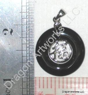 This Onyx necklace pendant features the Chinese symbol for Fu and you can determine the size of the pendant by viewing the picture, the ruler on the left measures the pendant in inches.