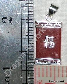 This Silver and Jade necklace pendant features the Chinese symbol for Blessing and you can determine the size of the pendant by viewing the picture, the ruler on the left measures the pendant in inches.