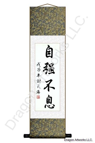 The strength idiom Chinese calligraphy painting is very meaningful. It reflects the character of Chinese very well. They are strong and self-determined. They go forward and never stop until the end. When you see this painting, you can always find incentive for you to go on. Chinese calligraphy painting of an idiom encouraging people to be strong and go forward so that you will succeed at last.