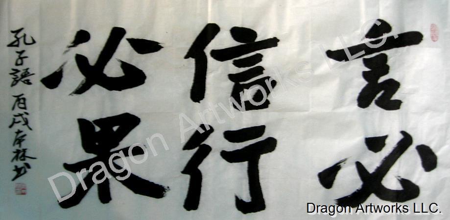 This calligraphy symbol painting on rice paper features Chinese calligraphy symbols meaning "Say What You Do and Do What You Say" and measures 38x24 Inches. The Do What You Say symbol calligraphy painting was painted by Beijing, China artist Xiao Ben Lin and is NOT mounted so it will need to be prepared for framing by you or your local frame shop before it is framed.